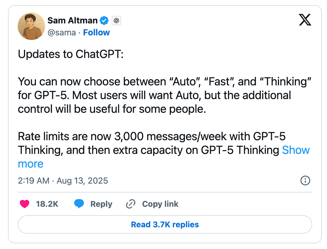 🔥 ChatGPT’s model picker returns with Auto, Fast, and Thinking. (continue reading)