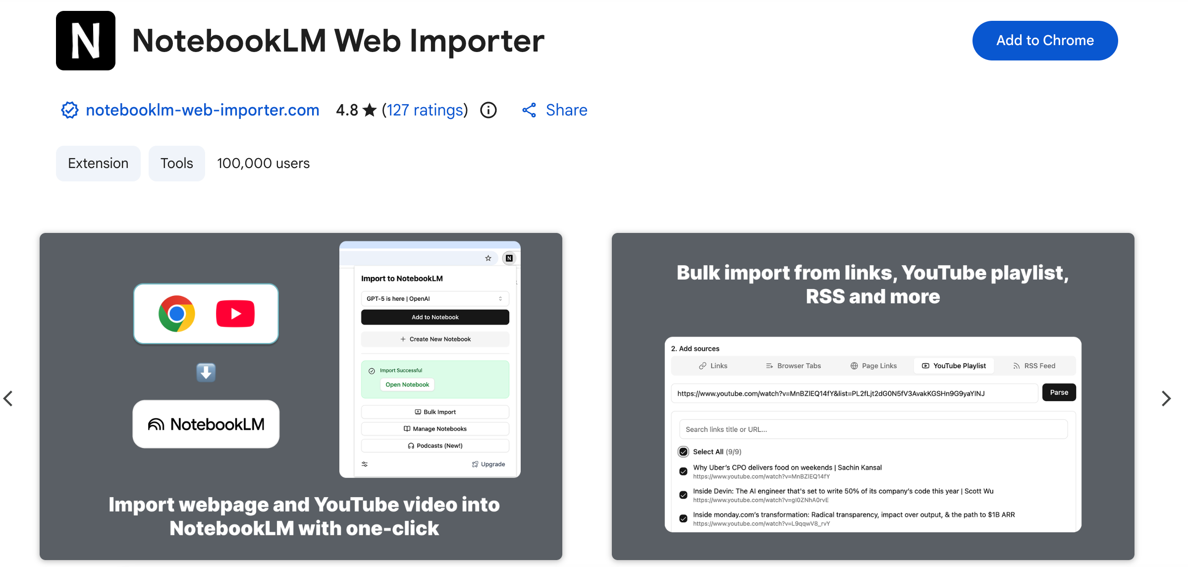 Now install the second extension: NotebookLM Web Importer.