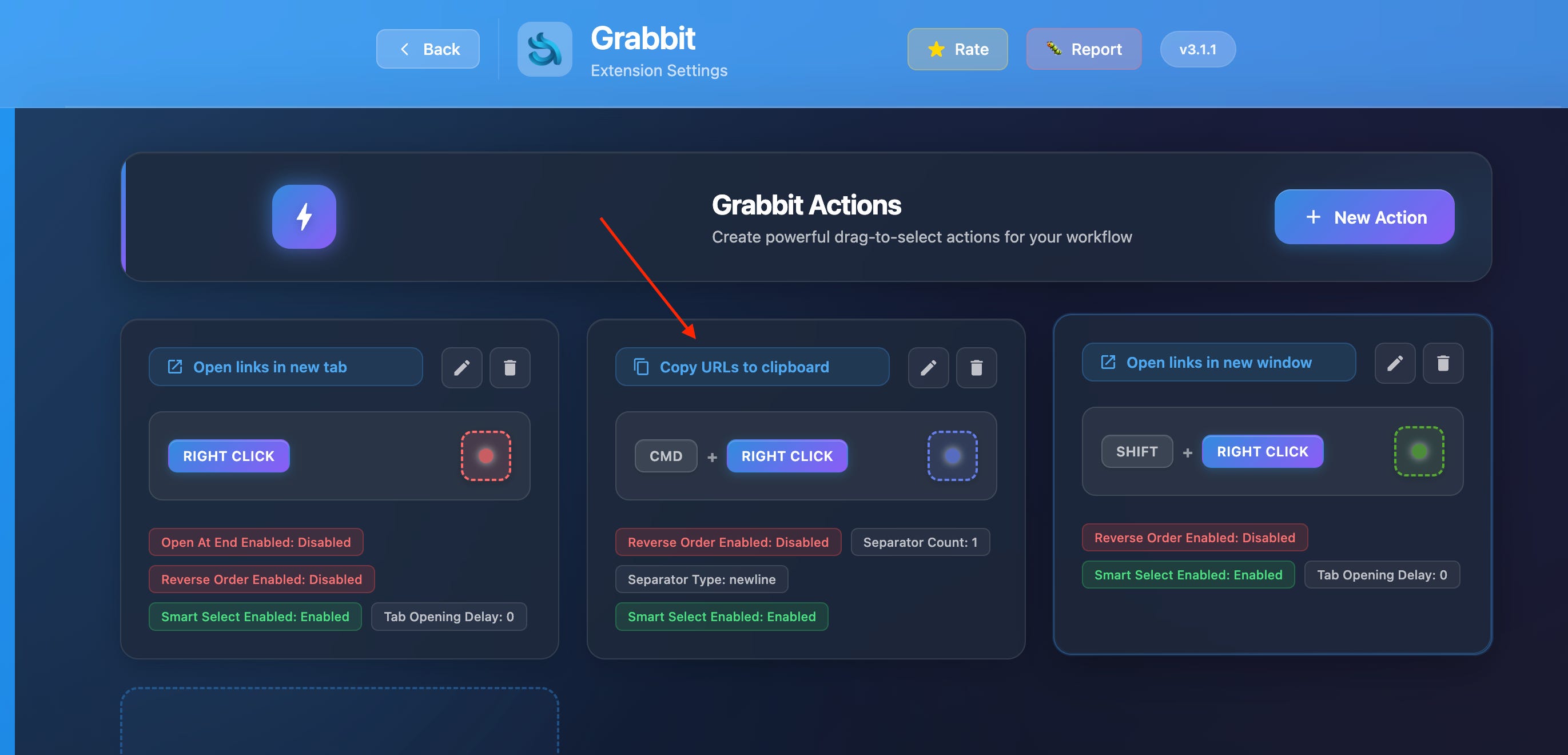 In Action Type, choose Copy URLs to clipboard