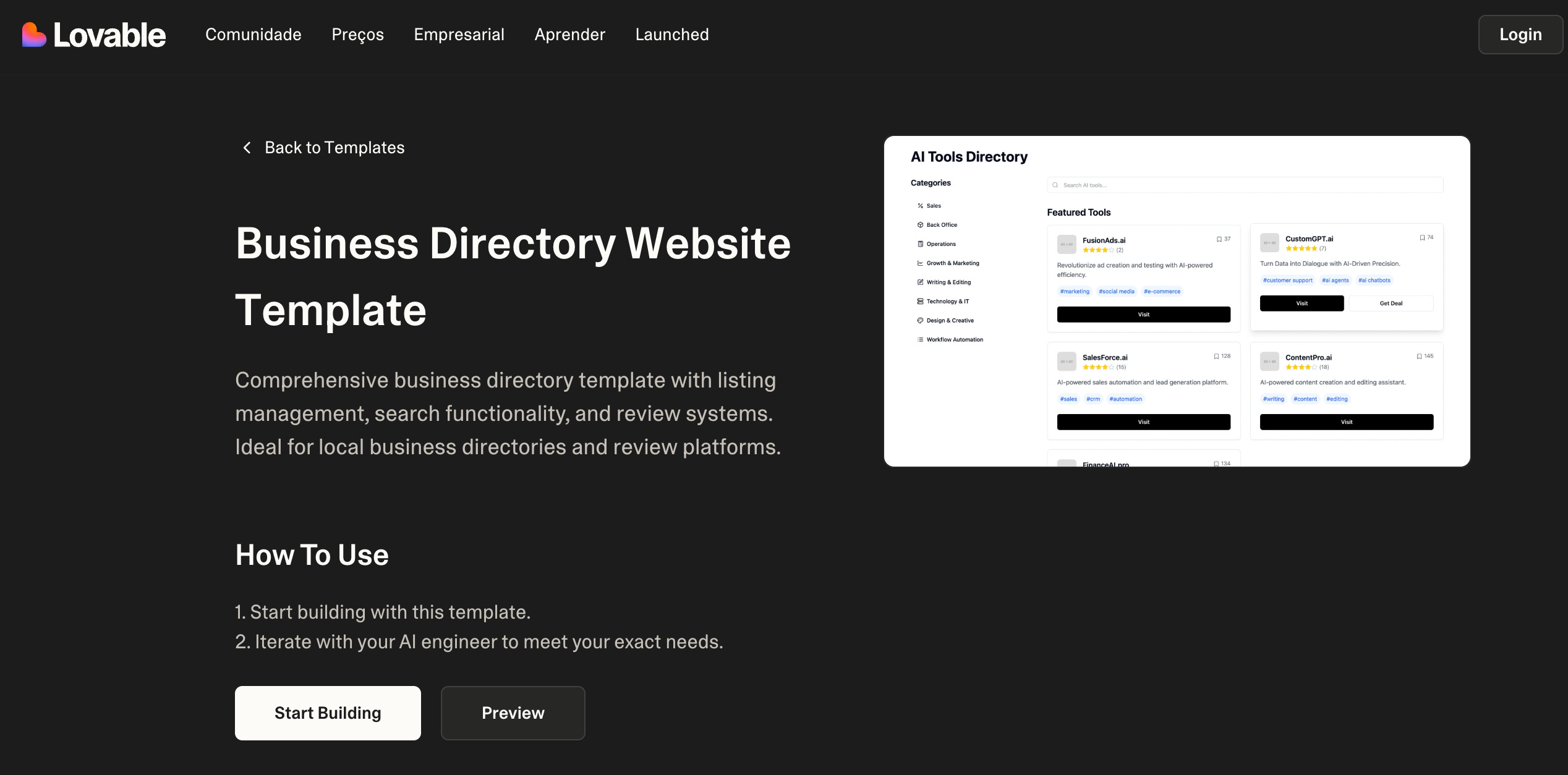 Find the original directory template (e.g. https://lovable.dev/templates/business-directory-website)