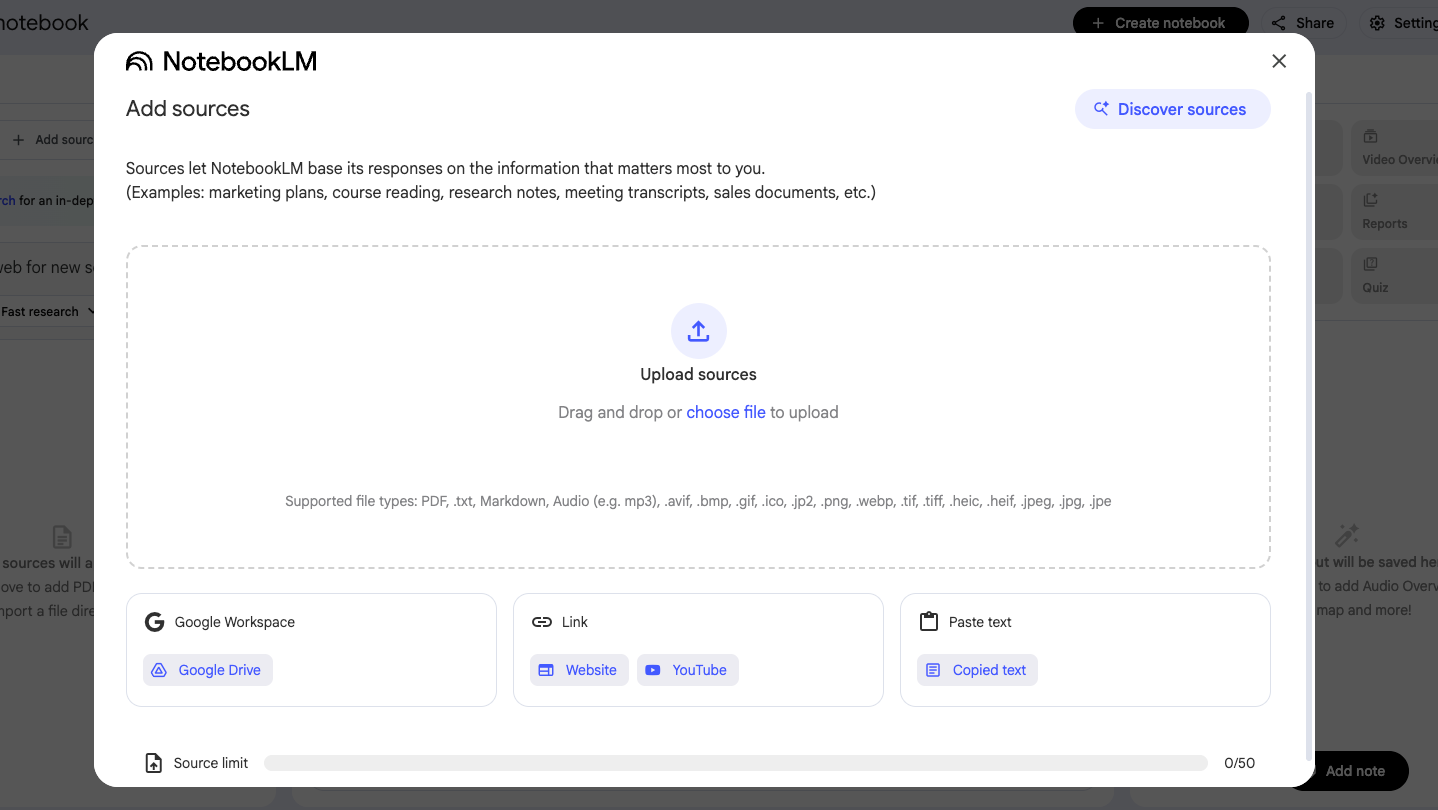 NotebookLM gives you five ways to add material. In the tutorial we show all of them.