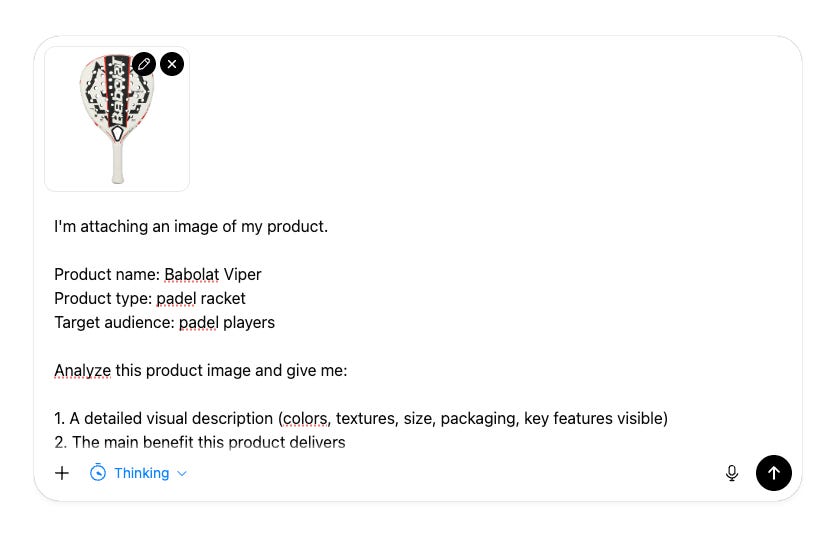 Open ChatGPT (or Claude, or Gemini) and upload your product image.