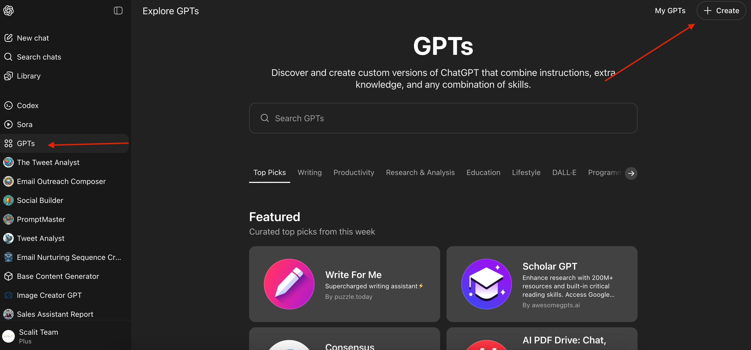 Go to ChatGPT → Explore GPTs → Create a GPT